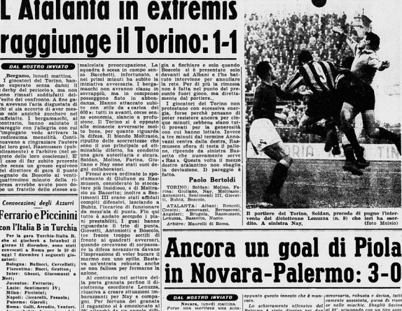 Leggi tuttoE’ un’Atalanta ancora deludente, l’allenatore Ferrero pare in confusione, fa esordire un altro giovane, Lenuzza, ma lo mette al centro dell’attacco spostando ancora Rasmussen a interno di centrocampo e Annovazzi mediano.