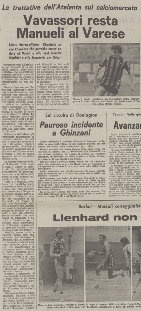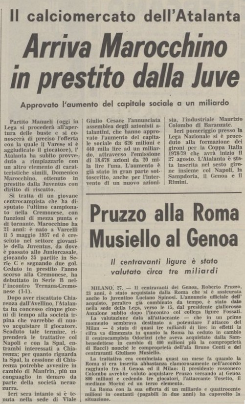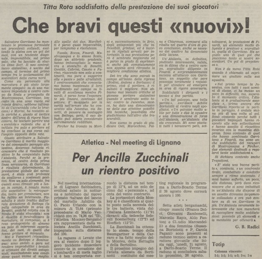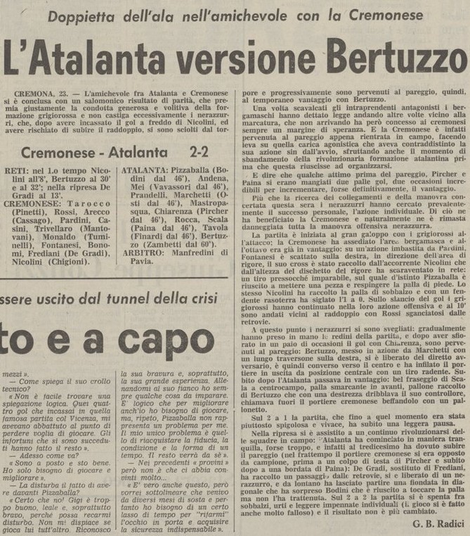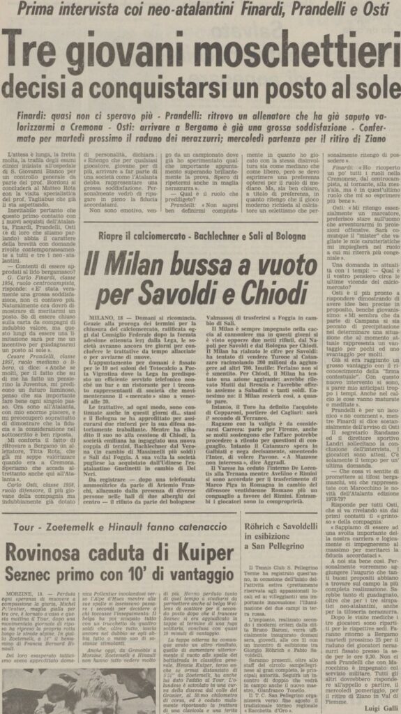 Dalla Cremonese arrivano i giovani Prandelli (anche se in realtà è qui in prestito dalla Juventus) e Finardi (quest’ultimo cresciuto nelle nostre giovanili e poi da cinque anni a Cremona), entrambi diveranno poi allenatori della nostra Primavera e, in annate sfortunate, della prima squadra.