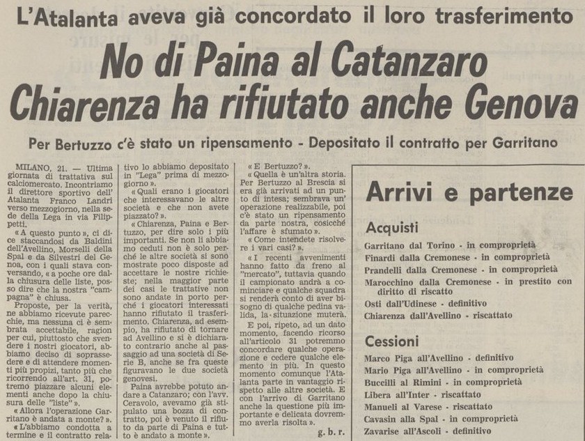 L’acquisto più importante, quello che dovrebbe risolvere i problemi in attacco, è quello del giovane attaccante Garritano dal Torino, in granata è ovviamente chiuso da Pulici e Graziani.
