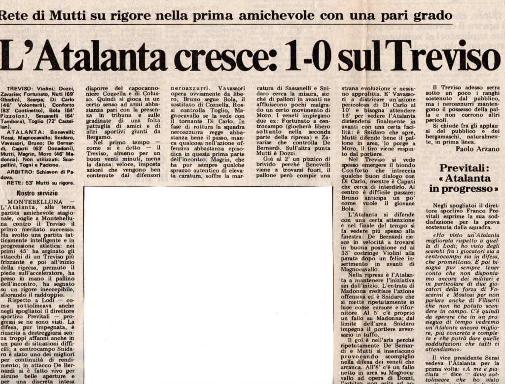 Gli acquisti non finiscono qui, come già detto dalla Triestina è arrivato Magnocavallo pagato di più per indennizzare la Triestina della perdita dell’allenatore Bianchi, dal Foggia Benevelli che per la categoria è una sicurezza assoluta, il primo gol subito a Bergamo in campionato arriverà a fine gennaio 1982 con il Forlì, in tutto il campionato ne prenderà solo tre in casa, saremo largamente la miglior difesa del campionato con quindici gol subiti.