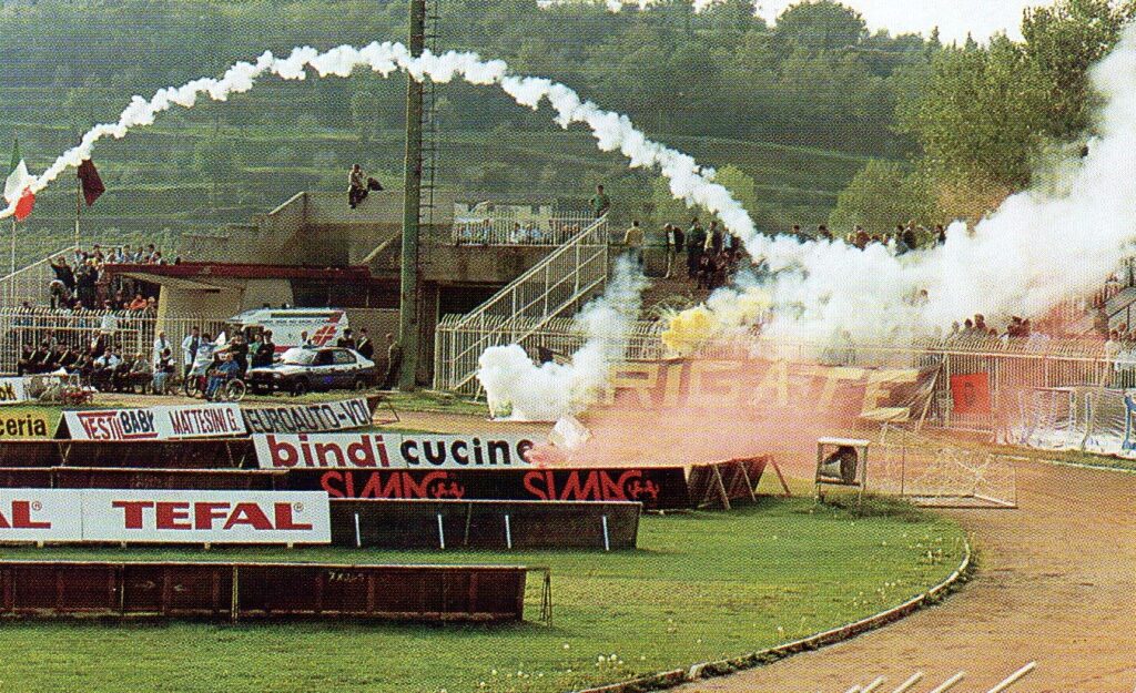 Nei toscani i futuri atalantini Nappi e Tovalieri, in panchina c’è il nostro ex giocatore e allenatore Bolchi, recentemente scomparso.