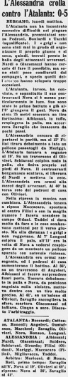 Finisce con la manita, nell’Alessandria c’è il sedicenne Gianni Rivera ma non è in campo in questa partita.