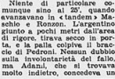 Giornata bella e tiepida ma campo paludoso e coperto di segatura, all’ingresso delle squadre suona la marcia dei bersaglieri.