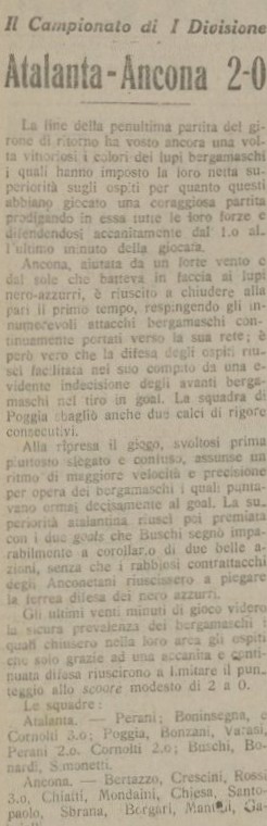 Festeggia il numeroso pubblico presente alla Clementina, è stato appena fondato il primo club di tifo organizzato (diciamo così con tutte le proporzioni del caso e dell’epoca), niente ultras o brigate, si chiama “La Crociata” non hanno un motto ma potrebbe benissimo essere “L’Atalanta non si discute si ama” in quanto non sopportano da nessuno la minima critica alla Dea.