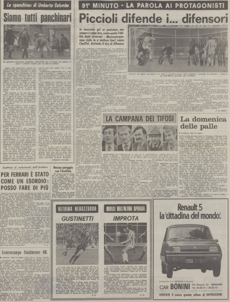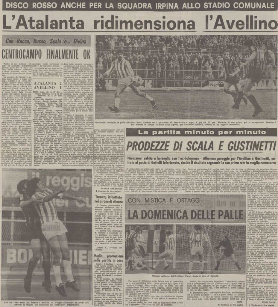 Nel secondo dei tre anni tristi di Serie B battiamo i biancoverdi con gol iniziale di Scala e, dopo il pareggio avellinese, gol decisivo di Elio Gustinetti che diventerà poi ottimo allenatore anche dell’Albinoleffe (in tre diverse occasioni).
