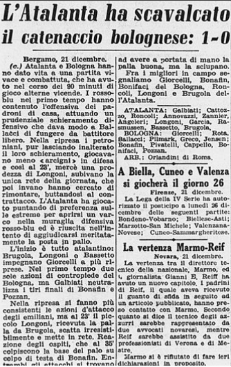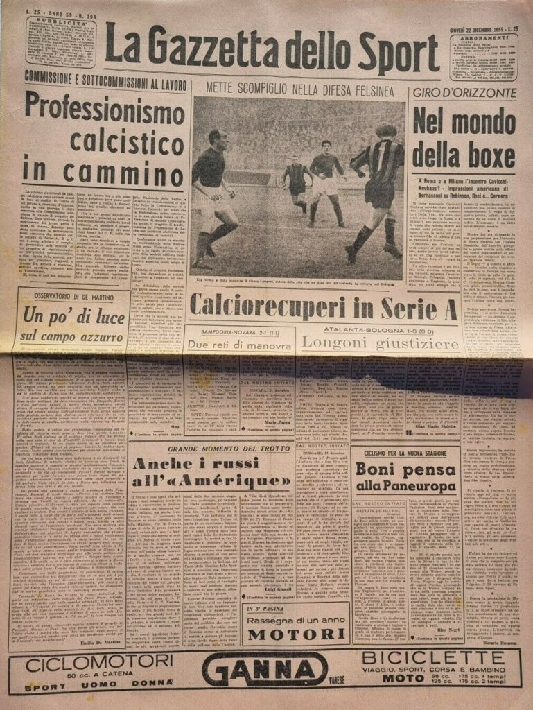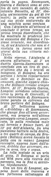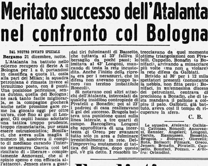 Un gol molto anni cinquanta, punizione laterale a centrocampo di Brugola per Longoni che avanza, la difesa è incerta, Longoni tira e segna, tutto qui.