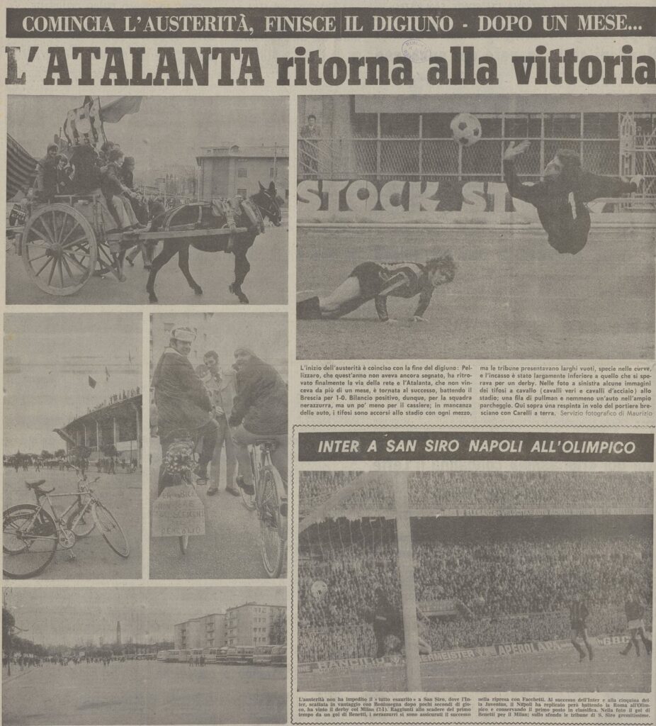 Nel derby dell’austerità (è proibita la circolazione delle auto private la domenica per risparmiare benzina causa forte aumento del prezzo del petrolio) dominiamo il Brescia ma segniamo un solo gol.