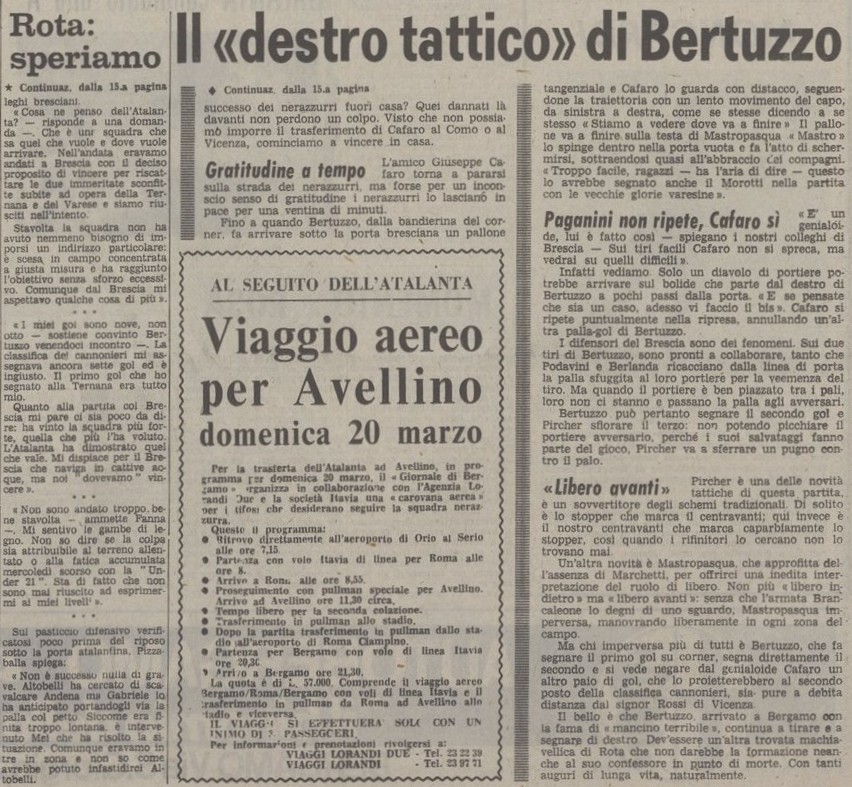 Rischiamo solo in un’occasione ma Mei salva sulla linea su un colpo di petto di Andena che per precedere Altobelli aveva ingannato Pizzaballa.