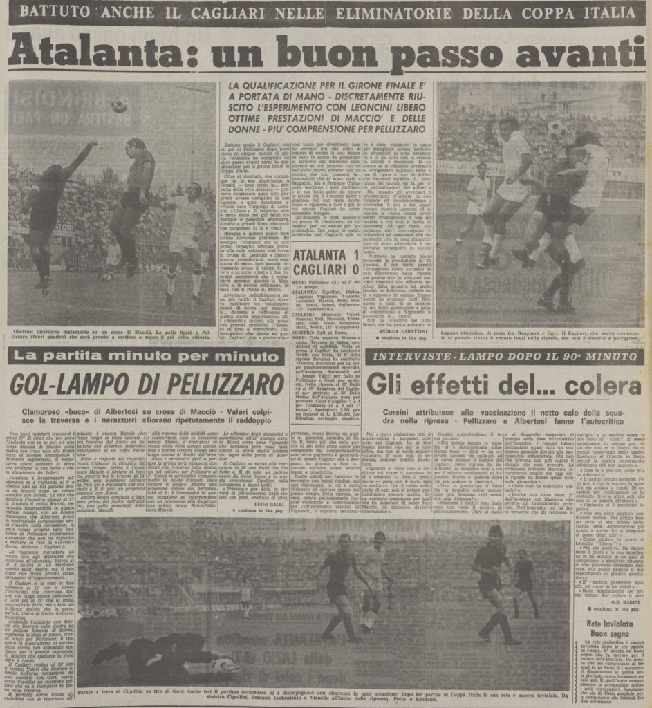 Perde anche qui, segna Pellizzaro dopo due minuti (con la complicità del portiere ospite Albertosi che fa una notevole vaccata smanacciando un cross) e finisce così, nel Cagliari non c’è Riva infortunato ma ci sono ancora Albertosi, Nenè e Brugnera tra gli altri.
