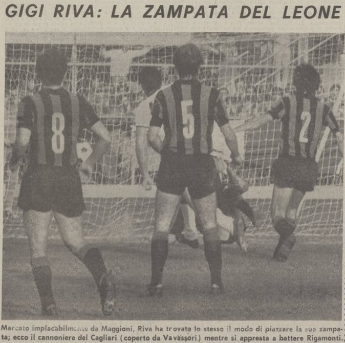 Dopo la sconfitta iniziale a San Siro contro l’Inter campione d’Italia ospitiamo i rossoblù di Rombo di Tuono, al secolo Gigi Riva, che dopo il gravissimo infortunio in Nazionale era tornato a giocare nelle ultime giornate del precedente campionato e si presenta con il suo Cagliari come pretendente allo scudetto (arriveranno quarti ma lui ne farà ventuno).