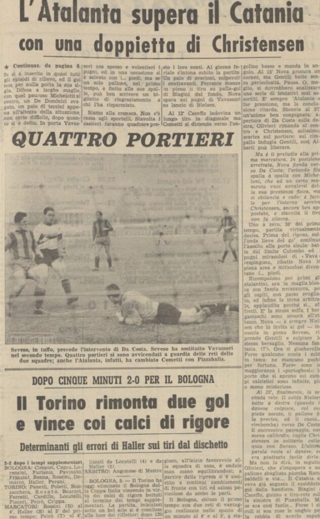 Si perchè in campionato non esistono ancora le sostituzioni ma in Coppa Italia si può cambiare il portiere, la novità stuzzica così tanto che entrambi gli allenatori ne approfittano, Pizzaballa sostituisce Cometti.