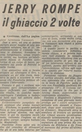Hitchens rimarrà a Bergamo due stagioni, era nel Toro nella finale di San Siro di Coppa Italia di due anni prima, è un attaccante forte fisicamente ma non proprio tecnico, segnerà comunque dodici gol in due stagioni con la nostra maglia.