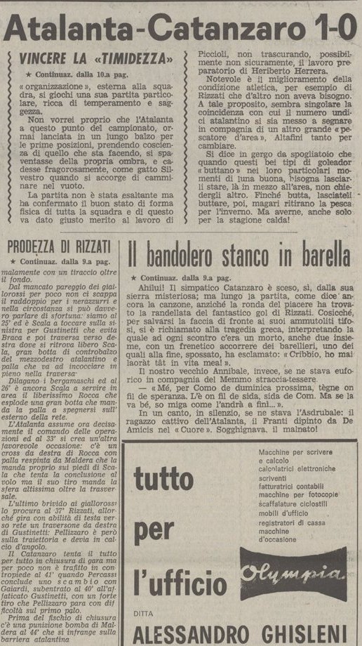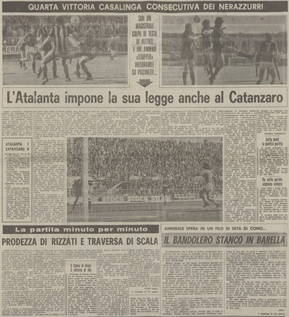 Corner di Gustinetti e Rizzati anticipa Ranieri (proprio l’attuale allenatore del Cagliari) di testa sotto la Sud piena di tifosi calabresi, i giallorossi sono circa duemila e nell’intervallo finisce pure a botte.