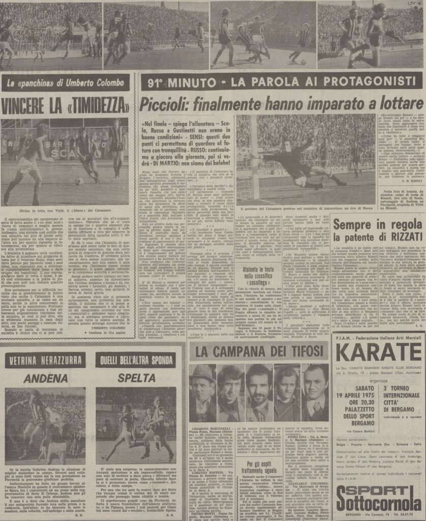Negli spogliatoi l’allenatore Piccioli (che aveva sostituito già a novembre Heriberto Herrera) commenta in modo pacato la vittoria e la nostra posizione di classifica a ridosso della zona promozione (e fa bene perderemo i due successivi scontro diretti con Como e Genoa e arriveremo sesti).
