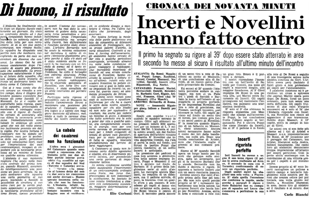 Della formazione in campo contro il Catanzaro il solo Maggioni sarà in quella dell’anno successivo, una rivoluzione totale necessaria, oltretutto proprio Maggioni segnerà nello spareggio di Bologna contro il Catanzaro il gol della promozione.