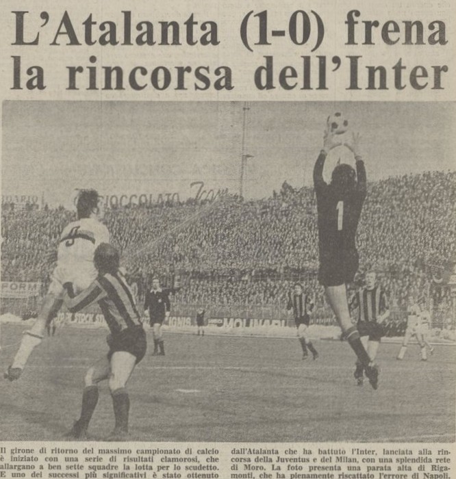 Giovedì ventisette gennaio: Mario Corso, ala sinistra dell’Inter, ospite al seguitissimo quiz “Il Rischiatutto” presentato da Mike Bongiorno, interpellato sull’imminente impegno di campionato dopo un obbligatorio “tutte le partite sono difficili” si lancia in un “tutte le squadre anche modeste vogliono batterci ma domenica a Bergamo vinciamo “.