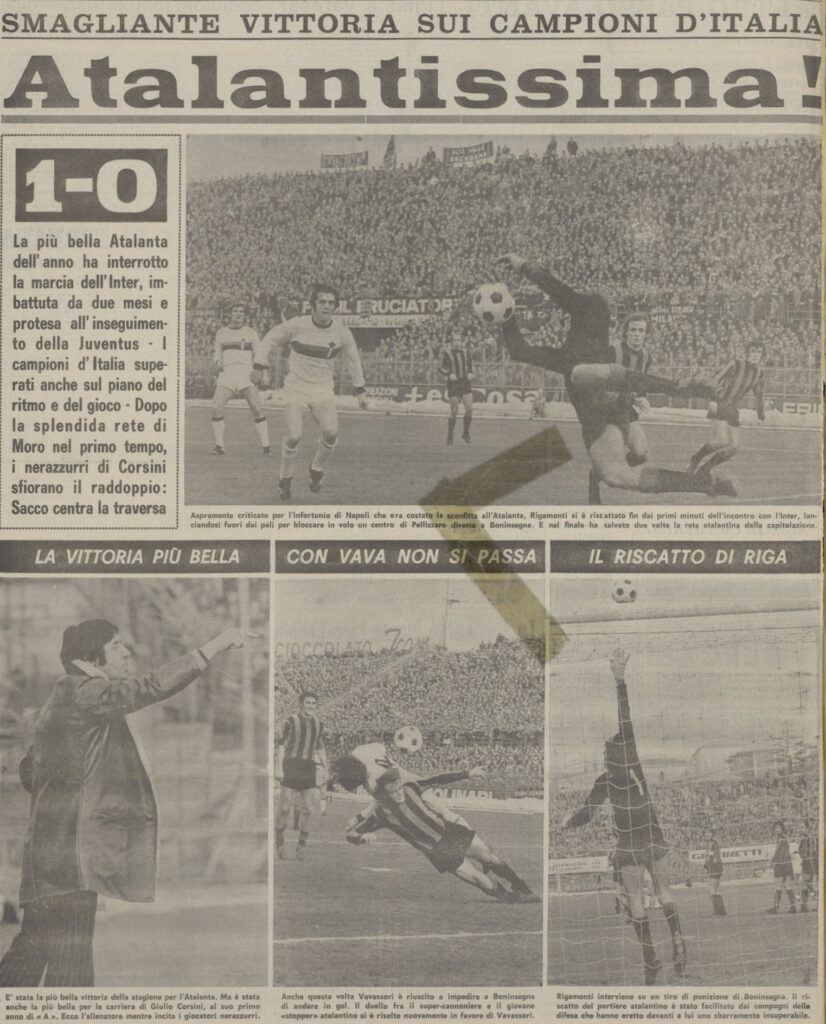 C’è ancora qualcosa da fare però, all’uscita dagli spogliatoi mentre gli atalantini sono osannati e, anche Facchetti, amato come bergamasco e capitano della Nazionale è applaudito, il litigioso (per tutta la partita con avversari e guardalinee) Corso è spernacchiato per il suo famoso pronostico del giovedì sera, ti sarebbe piaciuto vincere facile!