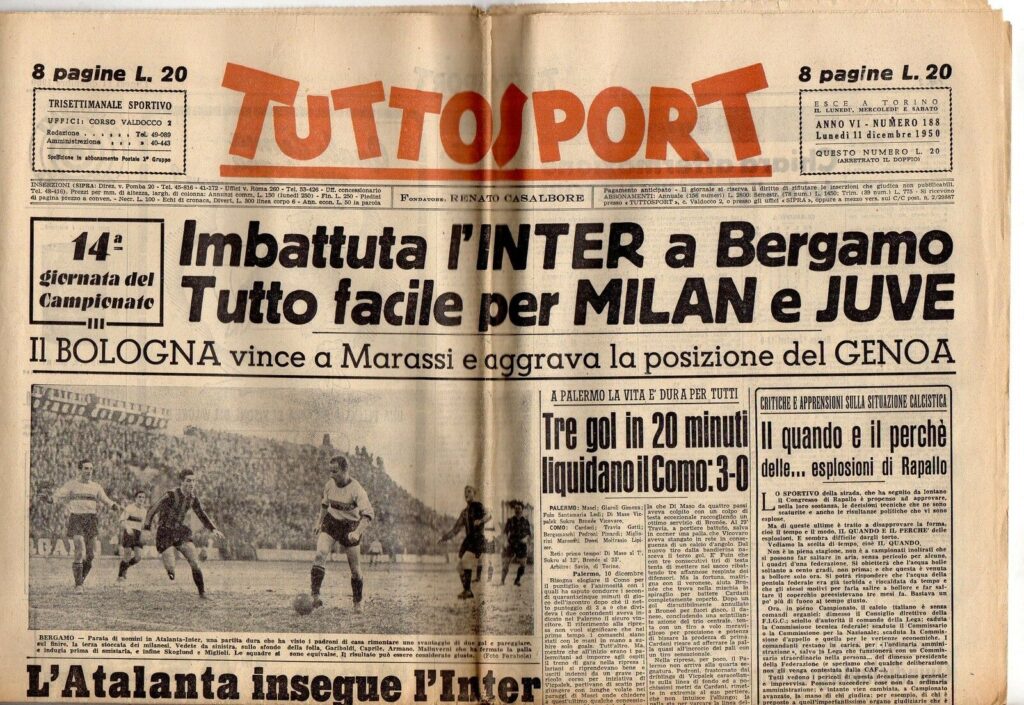 Tutta l’attenzione mediatica dell’epoca è su questa partita, immagini e le migliori firme sportive d’Italia.