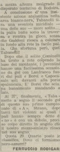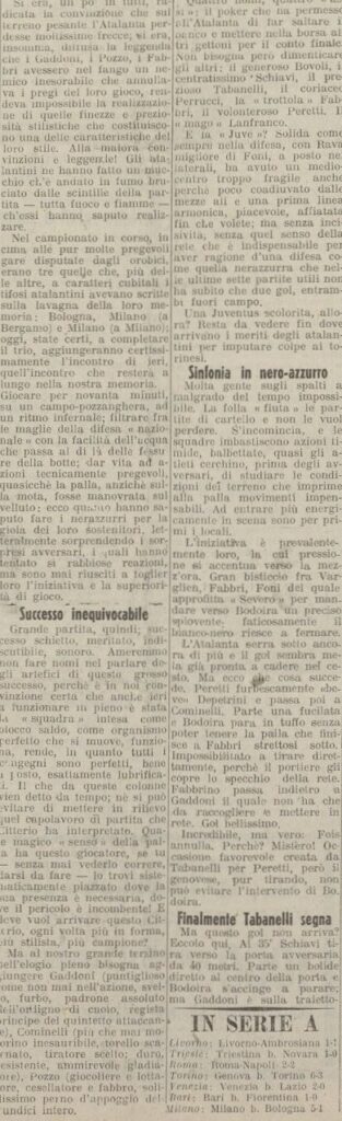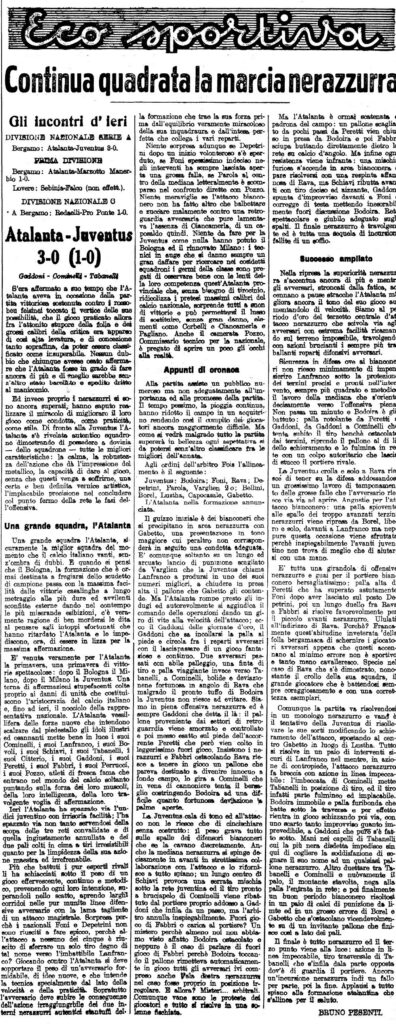 Il campionato atalantino terminerà un mese dopo con un fantastico sesto posto a soli otto punti dal Bologna campione, intanto abbiamo agganciato la Juventus al quarto posto.