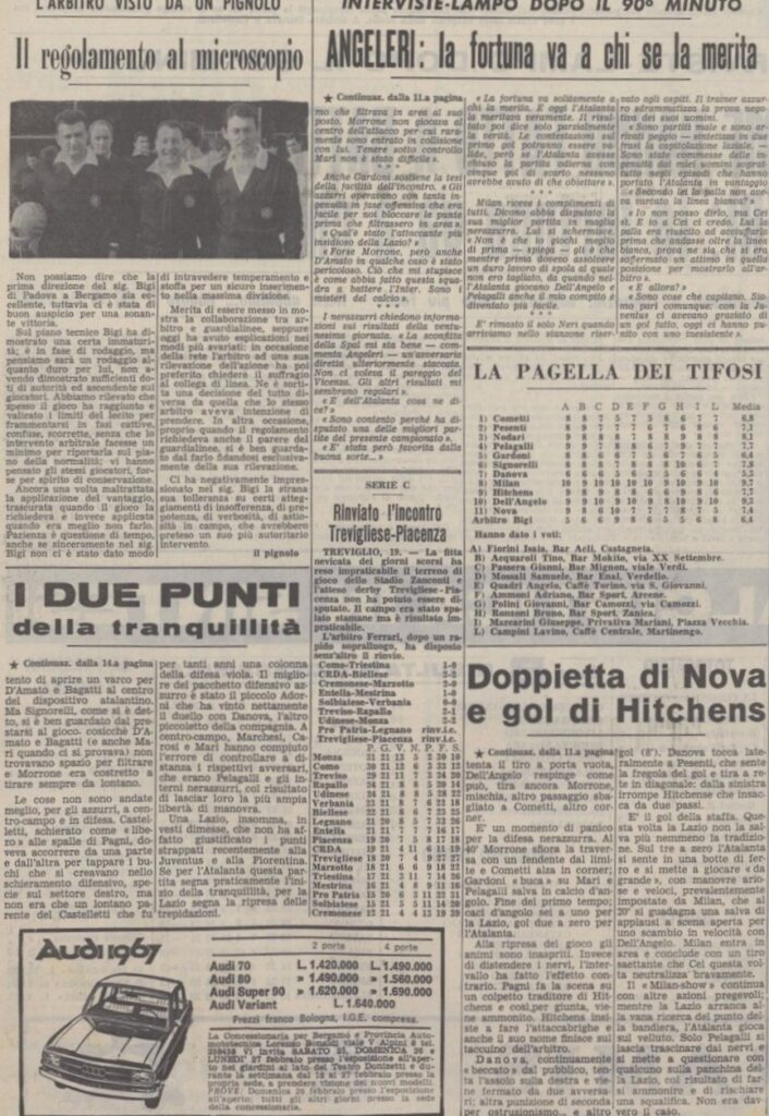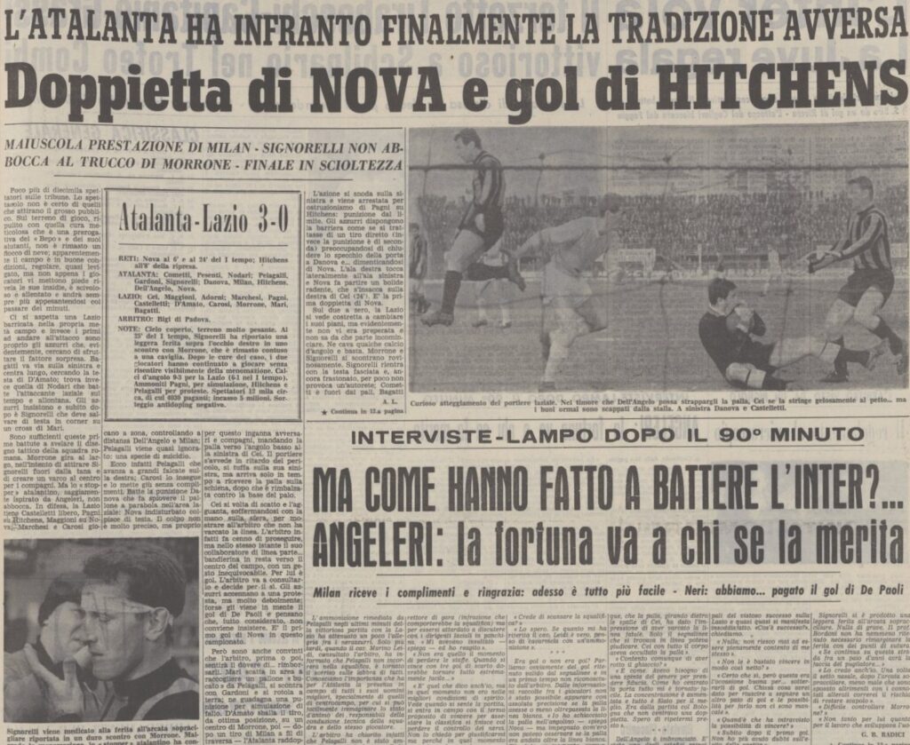 Finisce in totale controllo, un netto 3-0, nella Lazio c’è un giovane Maggioni (il terzino bergamasco diverrà un pilastro nei primissimi anni settanta) ma anche l’ex atalantino Marchesi.