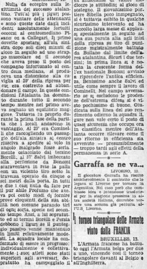 Segnano i due giocatori simbolo Cominelli e Salvi ma non bastano i loro gol a tenerci nella massima serie, il bomber della squadra, Fornasaris, ne fa cinque, Savio quattro e Cominelli tre, troppo pochi, torniamo subito in Serie B.