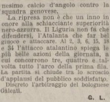 Una delle sole quattro vittorie del nostro primo campionato di Serie A, battiamo il Liguria (una delle tante squadre liguri dell’epoca che poi diventerà più o meno la…nonna della Sampdoria visto che la Sampierdarenese erediterà nel dopoguerra il titolo sportivo del Liguria).