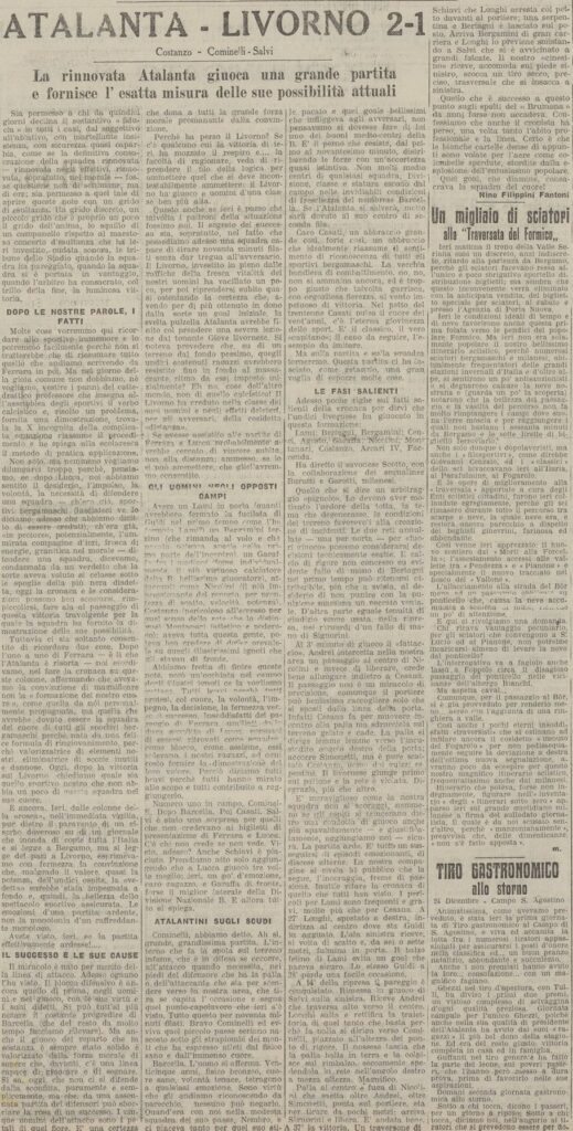 Salvi e Cominelli come anche Schiavi sono dei giovani messi in campo per provare a cambiare qualcosa dopo il periodo negativo, la scossa serve e la capolista viene ribaltata, gli sta pure bene visto che il sabato sera un giornalista bergamasco incontrando la squadra labronica al ristorante chiede un pronostico e come risposta un giocatore sbriciola della mollica tra le dita; gli sta bene due volte perché non saranno nemmeno promossi, saliranno l’anno dopo ma con noi.