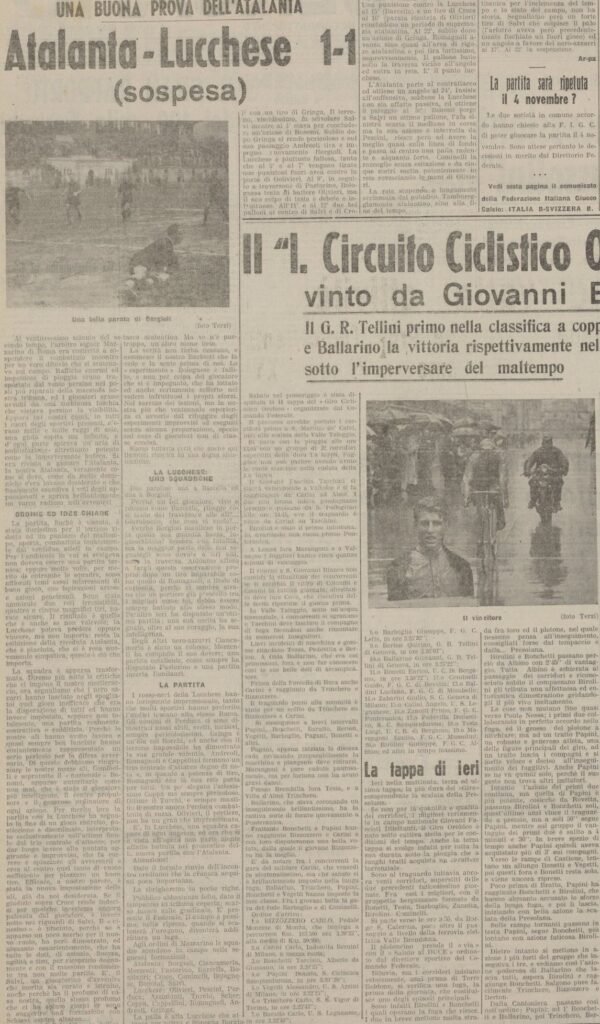 Da notare che dalla cronaca dell’ora di gioco la Lucchese risulta un’ottima squadra (arriverà terzultima e noi penultimi, certo poi retrocedono solo le ultime due, c’è notevole differenza tra le due posizioni) e i giocatori toscani sono colmati di elogi, tutti meno il portiere Olivieri (che diverrà meno di un anno dopo campione del mondo con l’Italia).