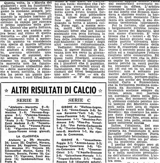 Da notare la curiosità iniziale, all’ingresso dei giocatori all’epoca allo stadio di Bergamo la musica che accompagna è quella marcetta detta “Marcia dei gladiatori” ma che è diventata tipica del circo, oggi intesa in senso non proprio marziale e anzi un pò deridente.