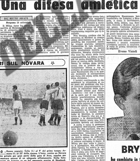 Prima giornata di campionato, arriva a Bergamo il Milan campione d’Italia, ovvio pienone allo stadio, le curvette sono ancora di legno e, dal lato Sud, sono state aggiunti dei gradini di legno dietro la porta sostenuti da pesanti sostegni che pare li reggano a fatica.