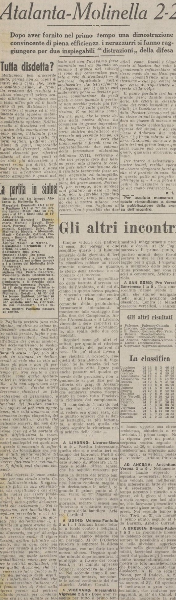 Nella vittoriosa corsa alla promozione in Serie A un incredibile pareggio interno contro il Molinella, squadra della cittadina omonima in provincia di Bologna, alla sua unica partecipazione in un campionato professionistico.