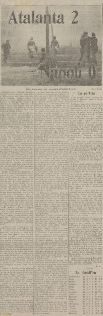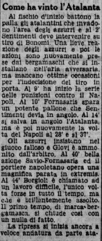 Con questi due punti agganciamo all’ultimo posto Livorno, Lucchese e proprio il Napoli, Bari e Fiorentina sono un punto avanti, a fine campionato noi e la Fiorentina arriveremo penultimi e ultimi staccati, l’esperienza nella massima serie dura solo un anno, per ora.