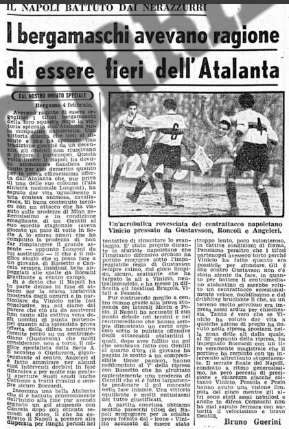 E’ una vittoria molto importante, a fine campionato ci salveremo proprio per due punti e il Napoli pur con i suoi “nomi” come il portiere Bugatti e i sudamericani Pesaola e Vinicio (c’è anche il fresco ex atalantino Brugola) farà solo un punto in più.