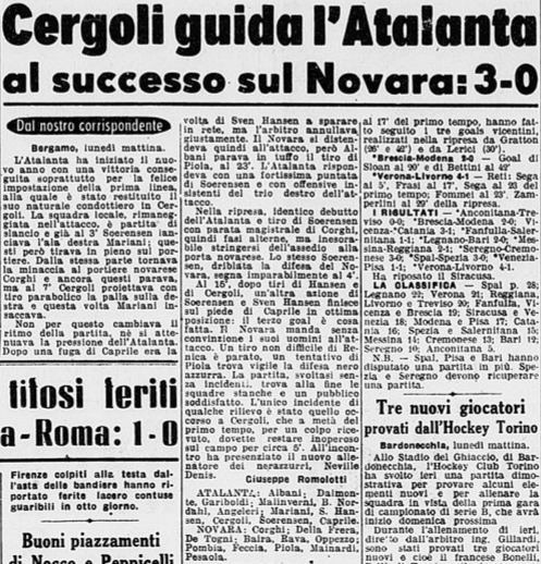 Dopo tre sconfitte consecutive con le quali si era chiuso il 1950 l’allenatore Varglien viene esonerato e viene chiamato al suo posto l’inglese Neville che assiste dalla tribuna al successo sul Novara.