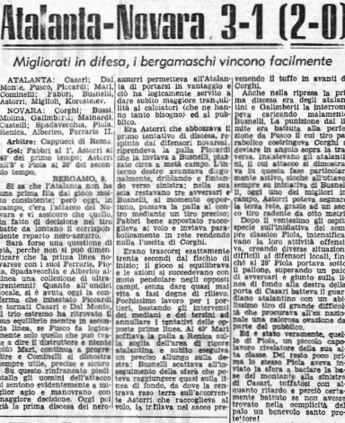 E’ un gol molto bello che viene applaudito dal pubblico bergamasco, del resto Piola anche se ha trentacinque anni nel gennaio 1948 (che calcisticamente corrispondono ad almeno quaranta di oggi) è ancora pericoloso, poco prima aveva preso la base del palo.