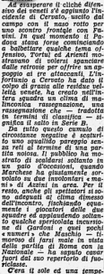 Fa caldo, siamo spenti, si vede qualche isolato numero di Maschio che però si riserva per la nazionale (italiana, da oriundo), è già l’ultima partita casalinga stagionale, giocheremo in trasferta le ultime due e il campionato si chiuderà a metà aprile a causa dei mondiali del Cile.