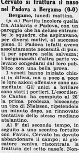 Non abbiamo grandi stimoli e il Padova è troppo scarso, al decimo del secondo tempo il difensore patavino Cervato in uno scontro si rompe il naso e deve uscire, i cambi non esistono ancora ma la superiorità numerica cambia poco.