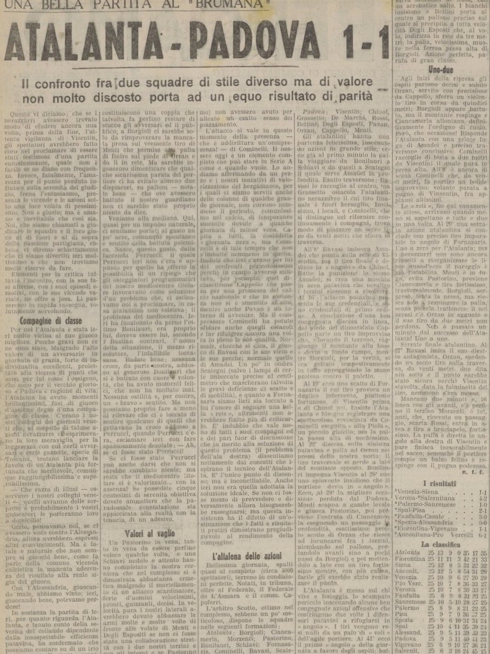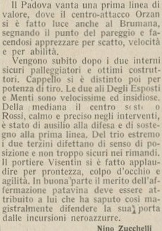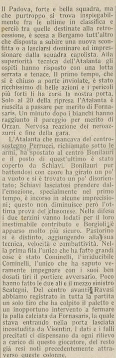 Tentiamo ancora di vincerla ma prima Ravasi prende la traversa poi il portiere patavino fa un miracolo su Morzenti, finisce pari, nonostante le sei vittorie consecutive la stampa da qualche partita ha iniziato a lanciare segnali d’allarme che purtroppo alla fine saranno giustificati.