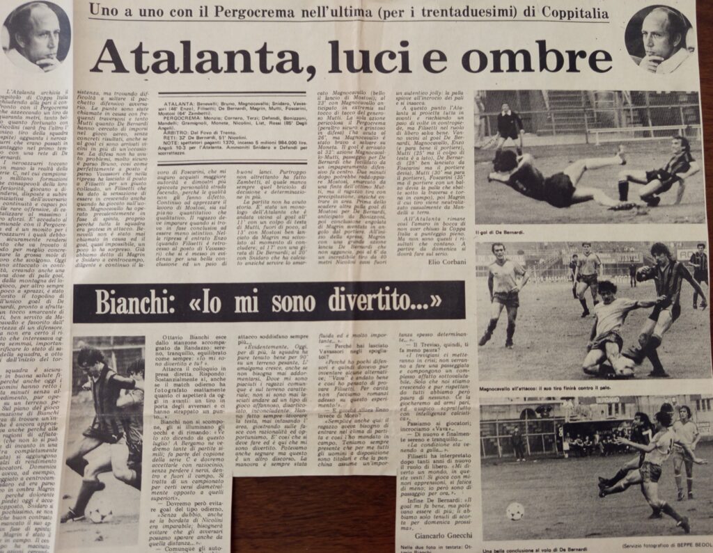 E’ una delle presenze all’Atalanta che mi rende più orgoglioso (come tutte quelle della Coppa Italia di Serie C successive) oltretutto la partita sotto l’acqua con il terreno scivoloso è molto divertente anche se finisce stranamente 1-1 noi creiamo un numero industriale di palle gol sballandole tutte.