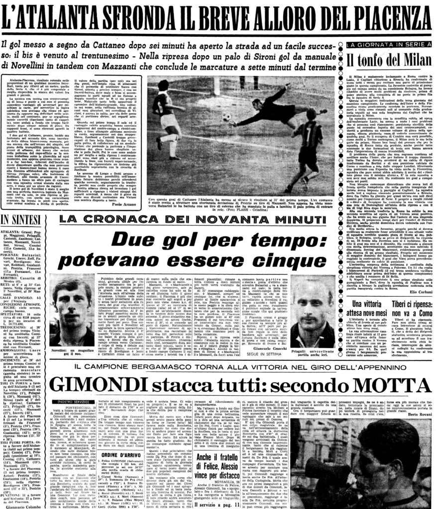 Il dominio atalantino è totale, la capolista improvvisata piacentina tira solo da trenta metri, alla mezzora il raddoppio è molto simile al primo gol, tiro di Mazzanti, un difensore respinge e ancora Cattaneo segna in diagonale.