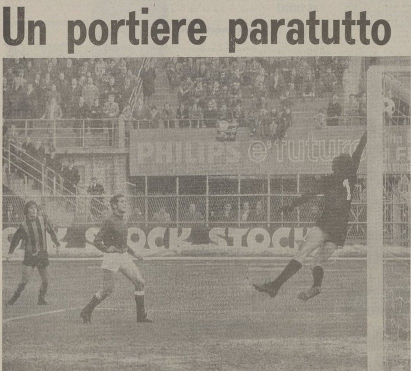 C’è aria di contestazione ma in effetti accade quasi nulla, come massimo atto di protesta un tifoso in Curva Sud si arrampica per togliere la bandiera nerazzurra esposta (come ora) all’epoca insieme alla bandiera della squadra ospite.