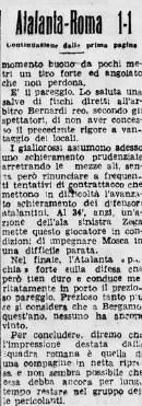 Siamo in 4.000, non pochissimi per l’epoca, l’inizio è tutto nostro con Cominelli e Schiavi, siamo nel dopoguerra ma i protagonisti sono ancora loro, nella Roma il centravanti è l’ex Amadei, a Bergamo giovanissimo nella stagione 38/39 in prestito.