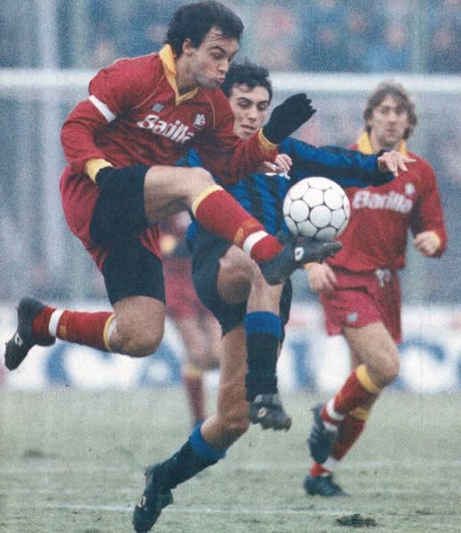 Raddoppia destreggiandosi in area Caniggia, Nicolini fa espellere Aldair e insomma non c’è partita.