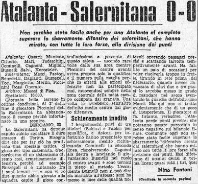 Arriva a Bergamo la Salernitana e la partita è attesa con curiosità soprattutto per le astuzie tattiche dell’allenatore Viani (che poi andrà anche al Milan).