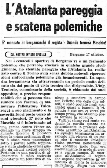 Se pare assurdo questo si sale di livello quando la polemica si accende, Maschio è stato visto passeggiare sul Sentierone e “non zoppicava quindi è guarito” ma non è ancora finita, viene praticamente obbligato dalla società a partecipare alla partitella di allenamento con l’ovvio risultato di dover esser portato fuori a braccia dopo due minuti.
