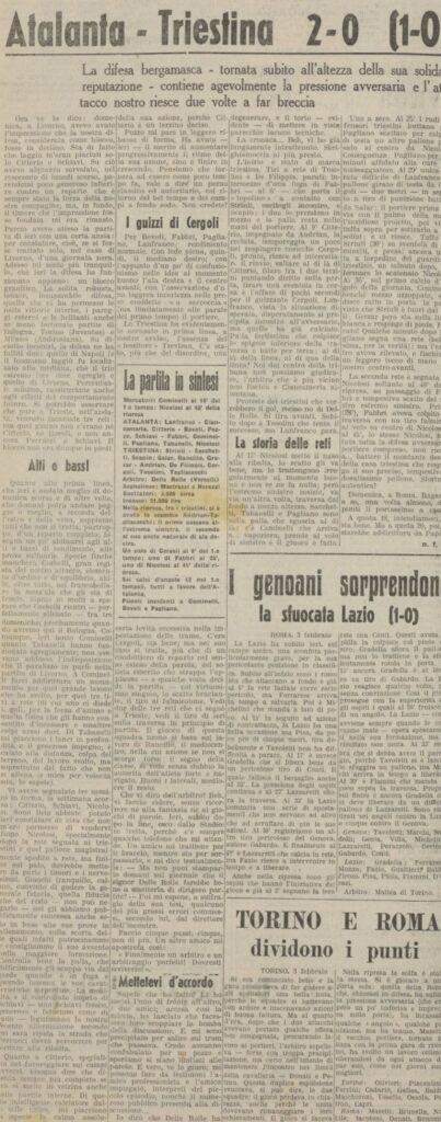 E’ la prima Atalanta della storia a giocare ad alto livello, arriviamo sesti a soli otto punti dal Bologna campione d’Italia.