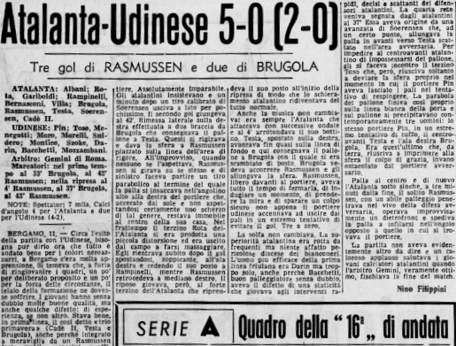 E’ un’Atalanta giovane, l’allenatore Ferrero schiera dall’inizio Rota, Rampinelli, Bernasconi, Brugola, Testa e Cadé II sotto l’accorta regia dell’esperto Soerensen e poi davanti c’è sempre Rasmussen.