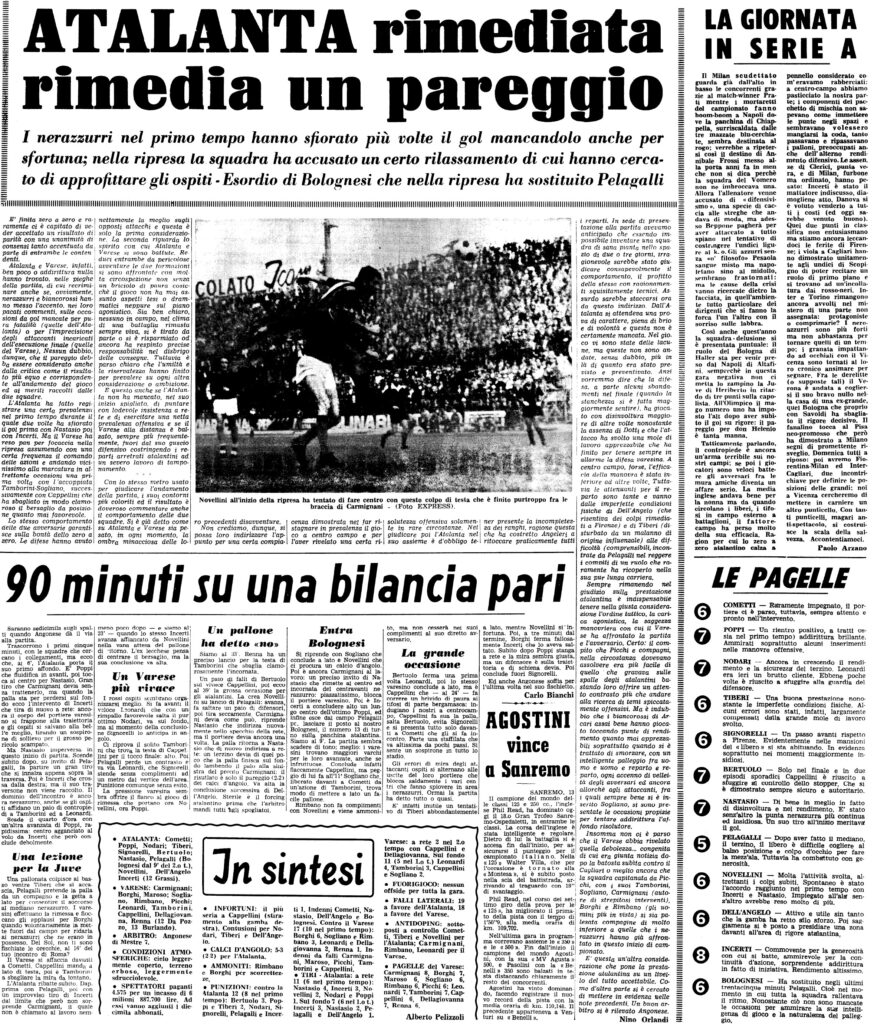 Pareggio a reti bianche con il Varese, le occasioni migliori nel primo tempo sono le nostre ma è bravissimo il portiere Carmignani (che andrà poi alla Juventus) in più occasioni, quando non ci arriva lui la rete varesina è salvata da deviazioni dei difensori.