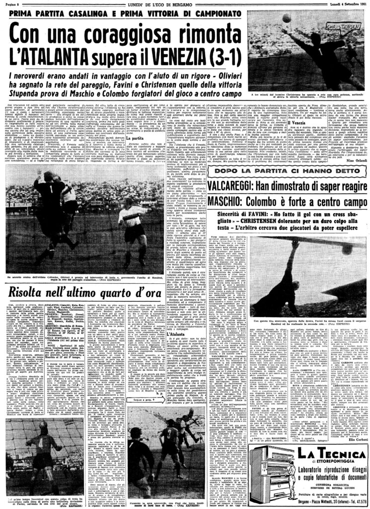 Ospitiamo il neopromosso Venezia, noi siamo con la seconda maglia come d’uso all’epoca, Venezia in maglia verde con bordi neri, il primo tempo è abbastanza sonnolento anche perché fa ancora abbastanza caldo, il campionato è iniziato in anticipo per l’epoca a causa dei mondiali del Cile del 1962.