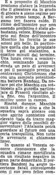 Finisce 3-1 con quattro gol nell’ultima mezzora, le interviste di Corbani sono gustosissime da leggere, sia dove si citano le “critiche” alla società sul calciomercato sia quando si cita un giocatore della squadra vincente che piange a dirotto solo perché convinto di aver giocato male, alcune cose sono rimaste uguali altre proprio no.